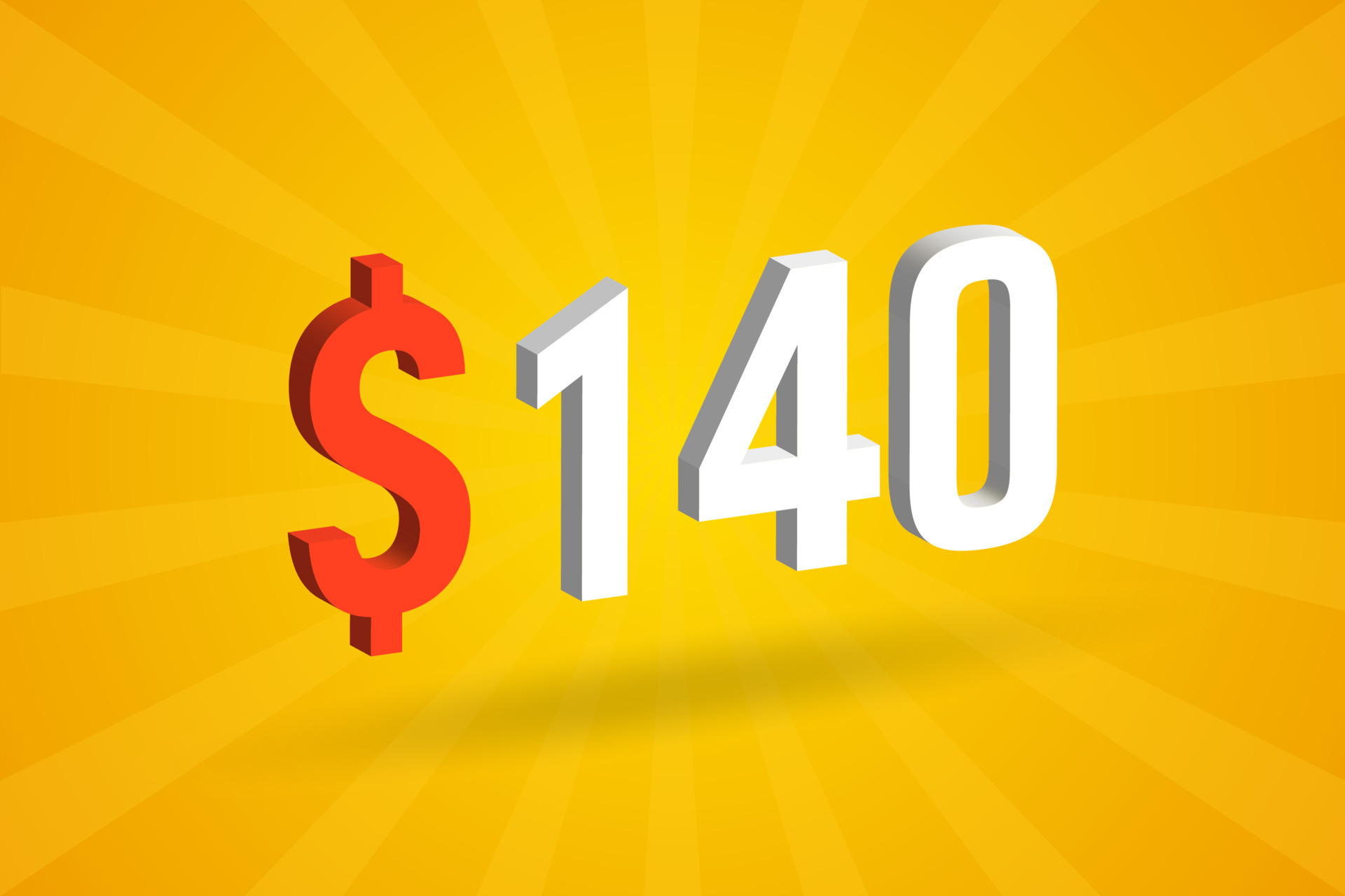 140 usd símbolo de texto 3d 140 dólares de los estados unidos 3d con