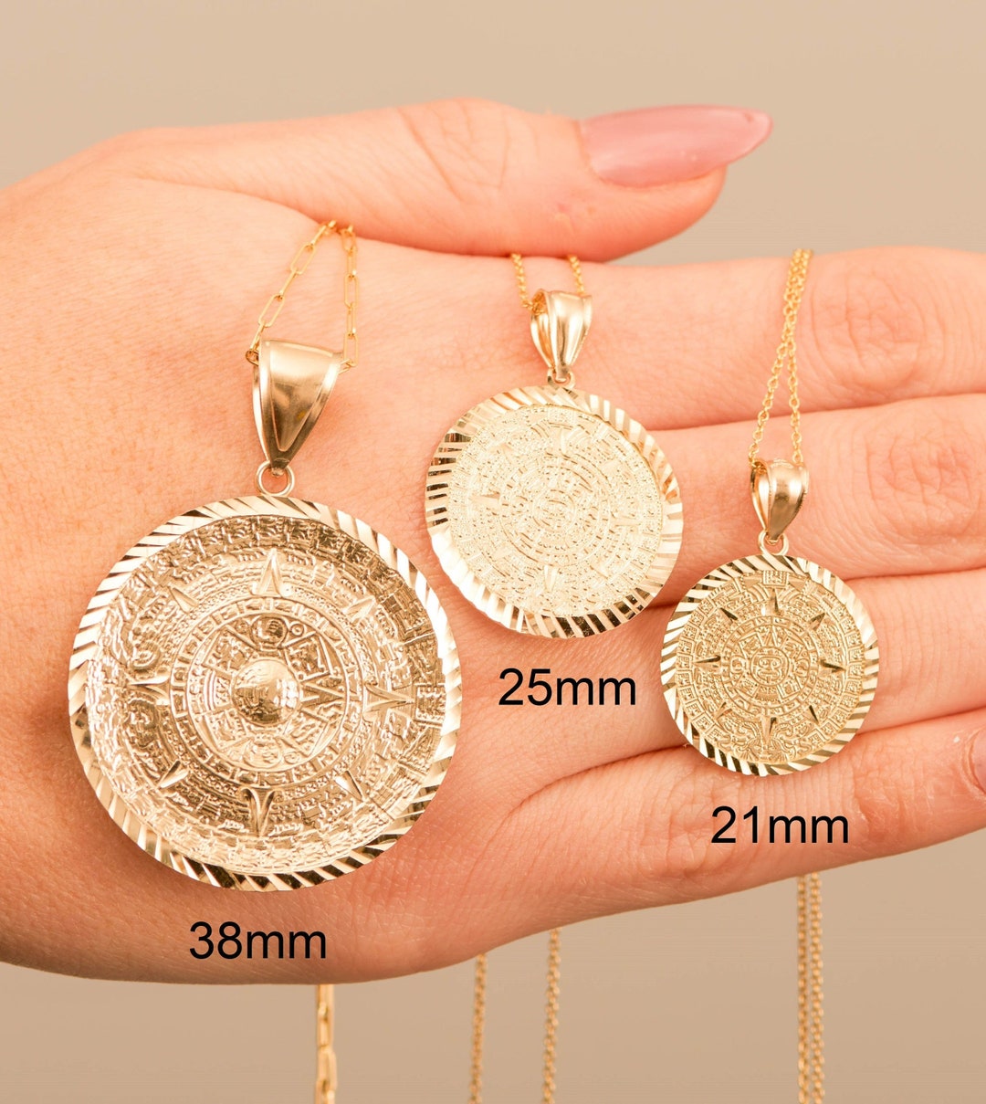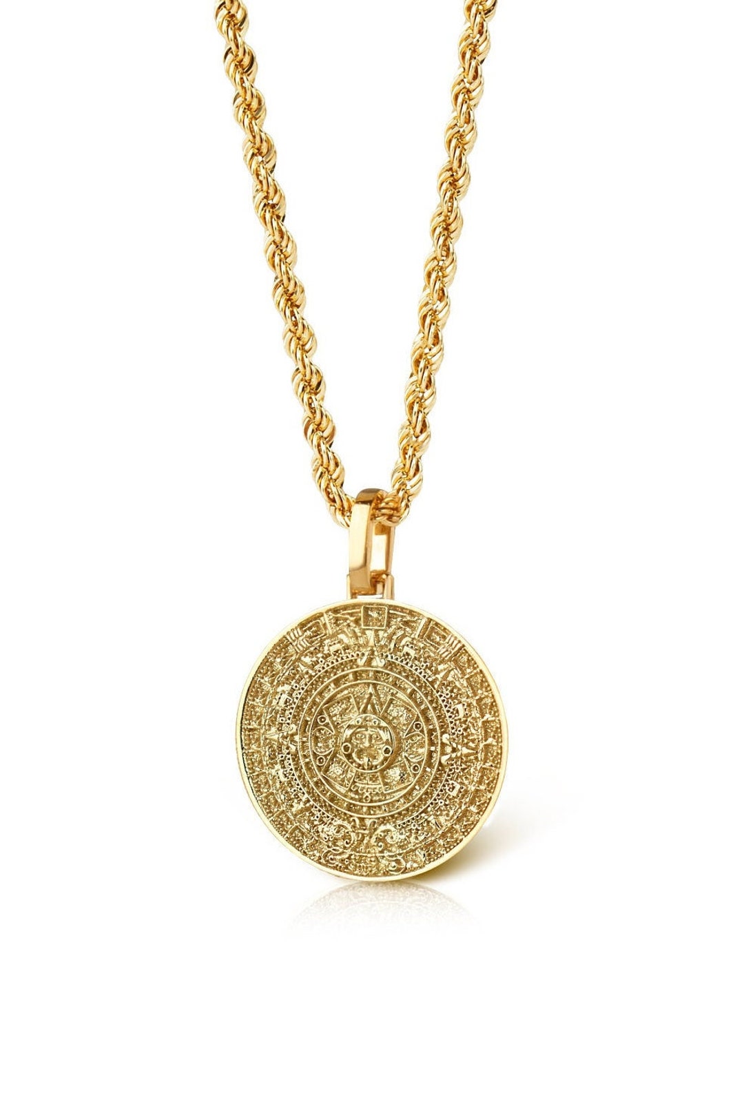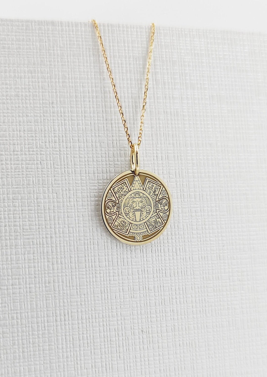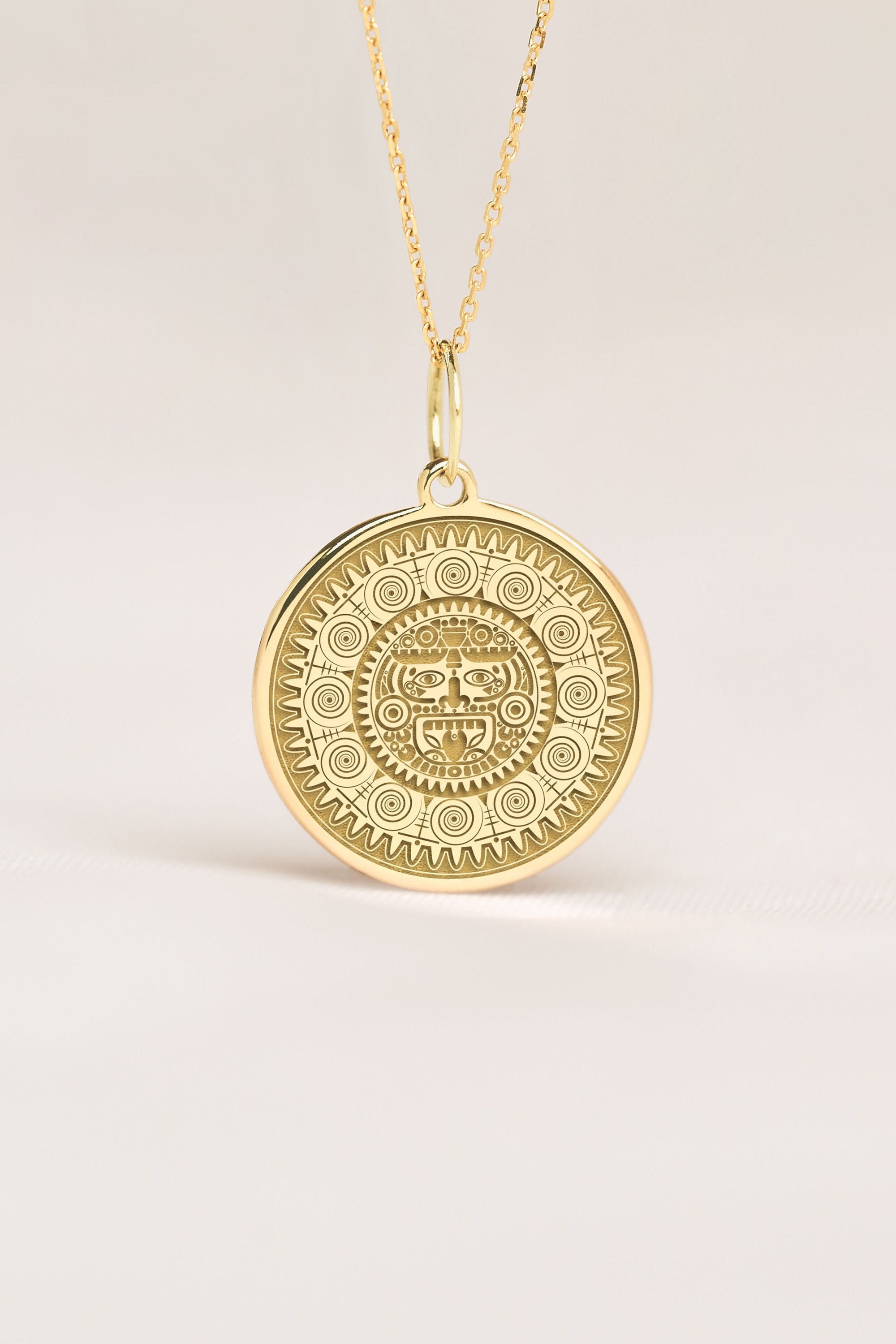 14K Solid Gold Aztec Calendar Pendant Mayan Gold Jewelry Etsy