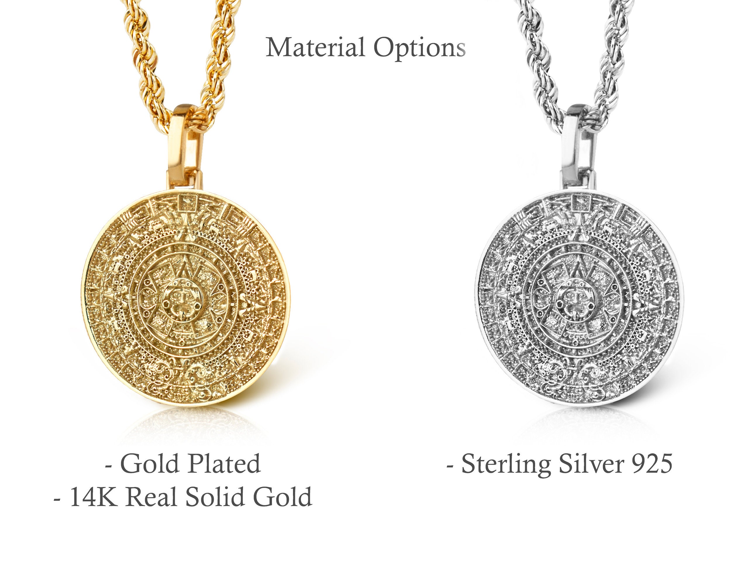 14K Solid Gold Aztec Calendar Pendant Mayan Gold Jewelry Perpetual
