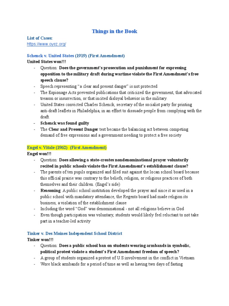 AP Gov Court Cases To Know PDF First Amendment To The United States