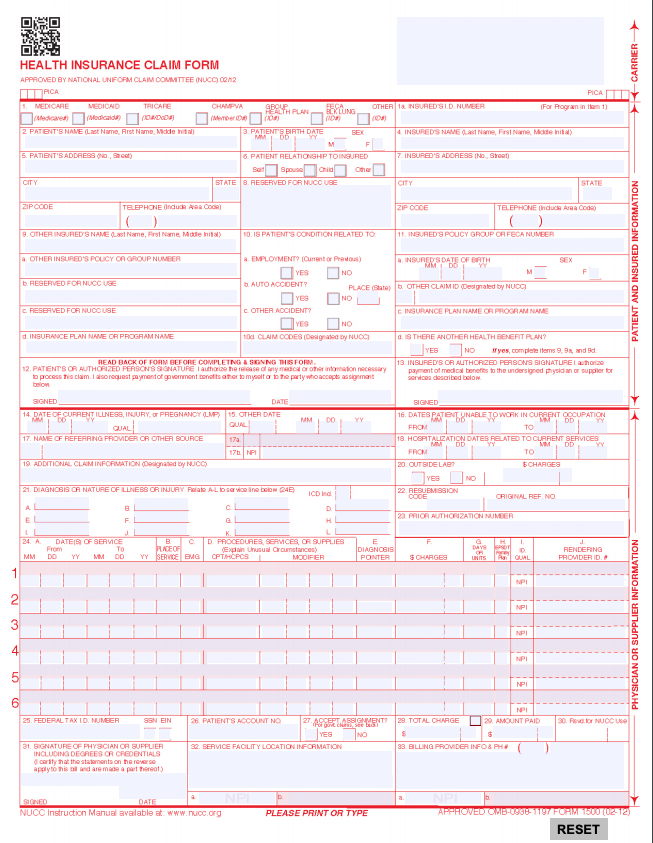 CMS 1500 Health Insurance Claim Form CMS Forms