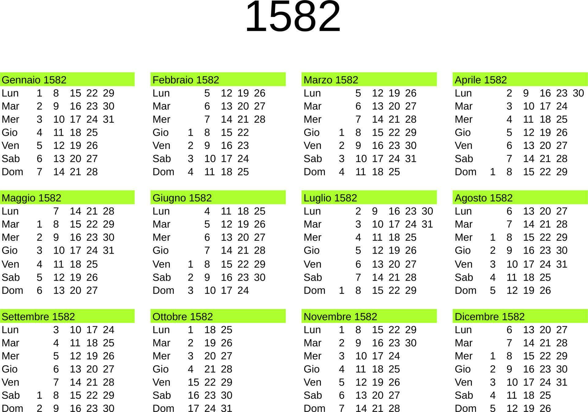 year 1582 calendar in Italian 23517439 Vector Art at Vecteezy