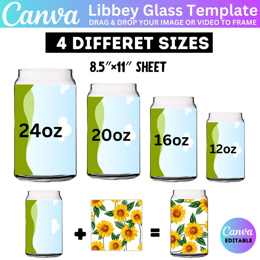 12oz 16oz 20oz 24oz Libbey Glass Canva Template Full Wrap Libbey