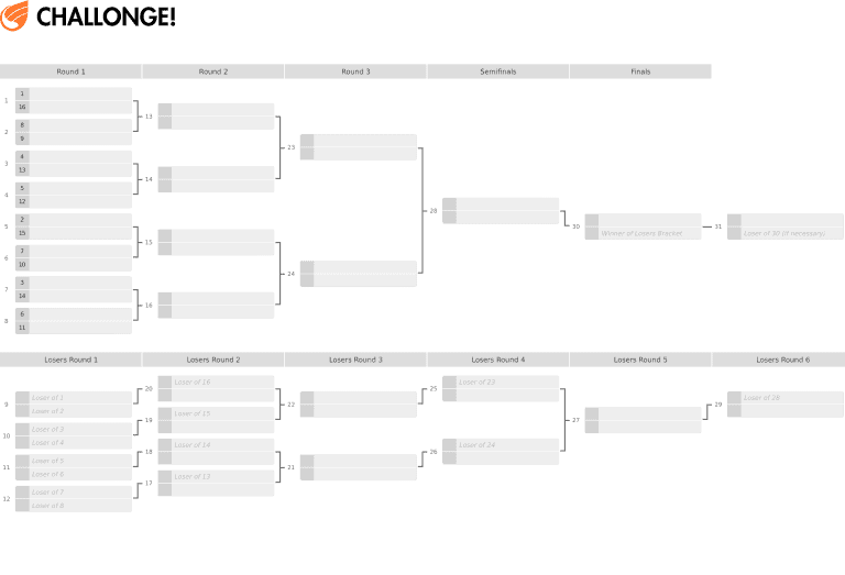 16 Team Double Elimination Printable Tournament Bracket