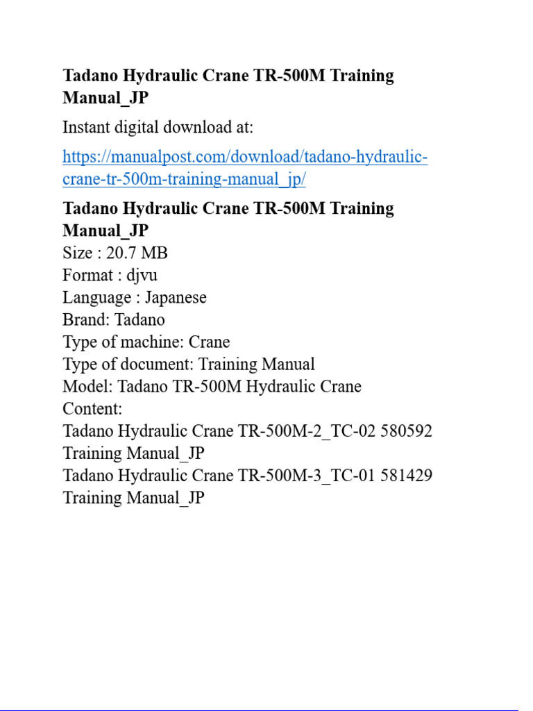 Tadano Hydraulic Crane Tr 500m Training Manual Jp PDF San Jose