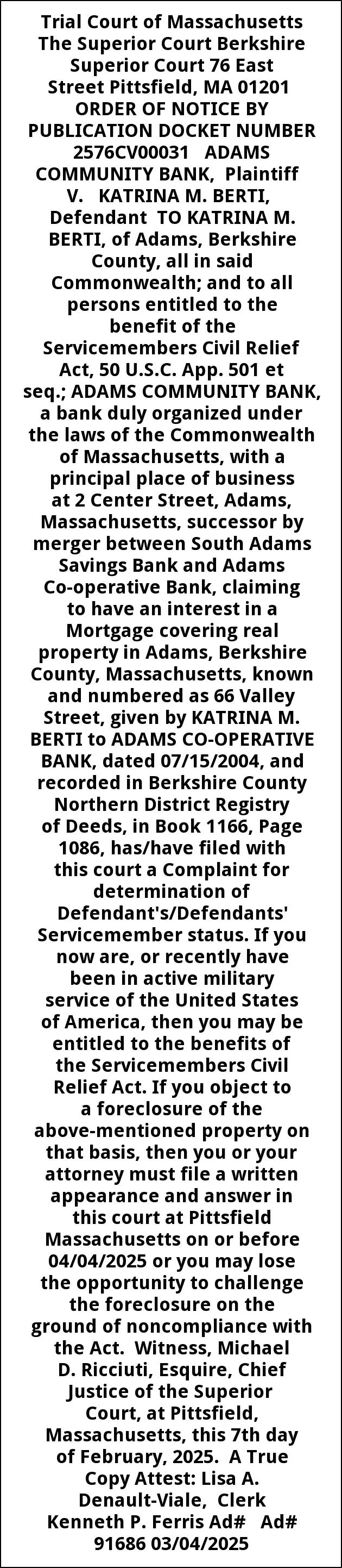 Citation Trial Court Probate and Family Court Pittsfield MA