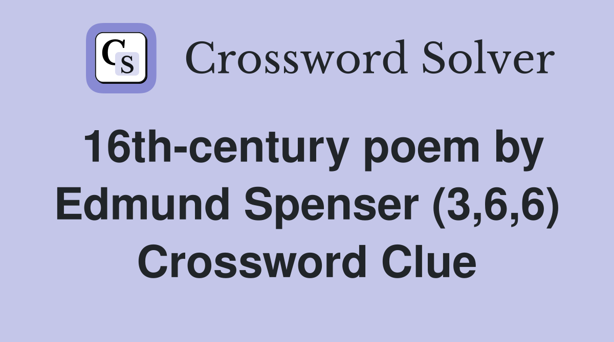 16th century poem by Edmund Spenser (3 6 6) Crossword Clue Answers