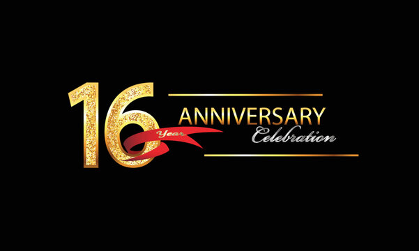 Premium Vector 16th Anniversary Logo design with golden color and