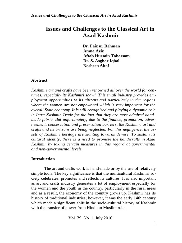 1 6 17 (Issues and Challenges to the Classical Art in Azad Kashmir