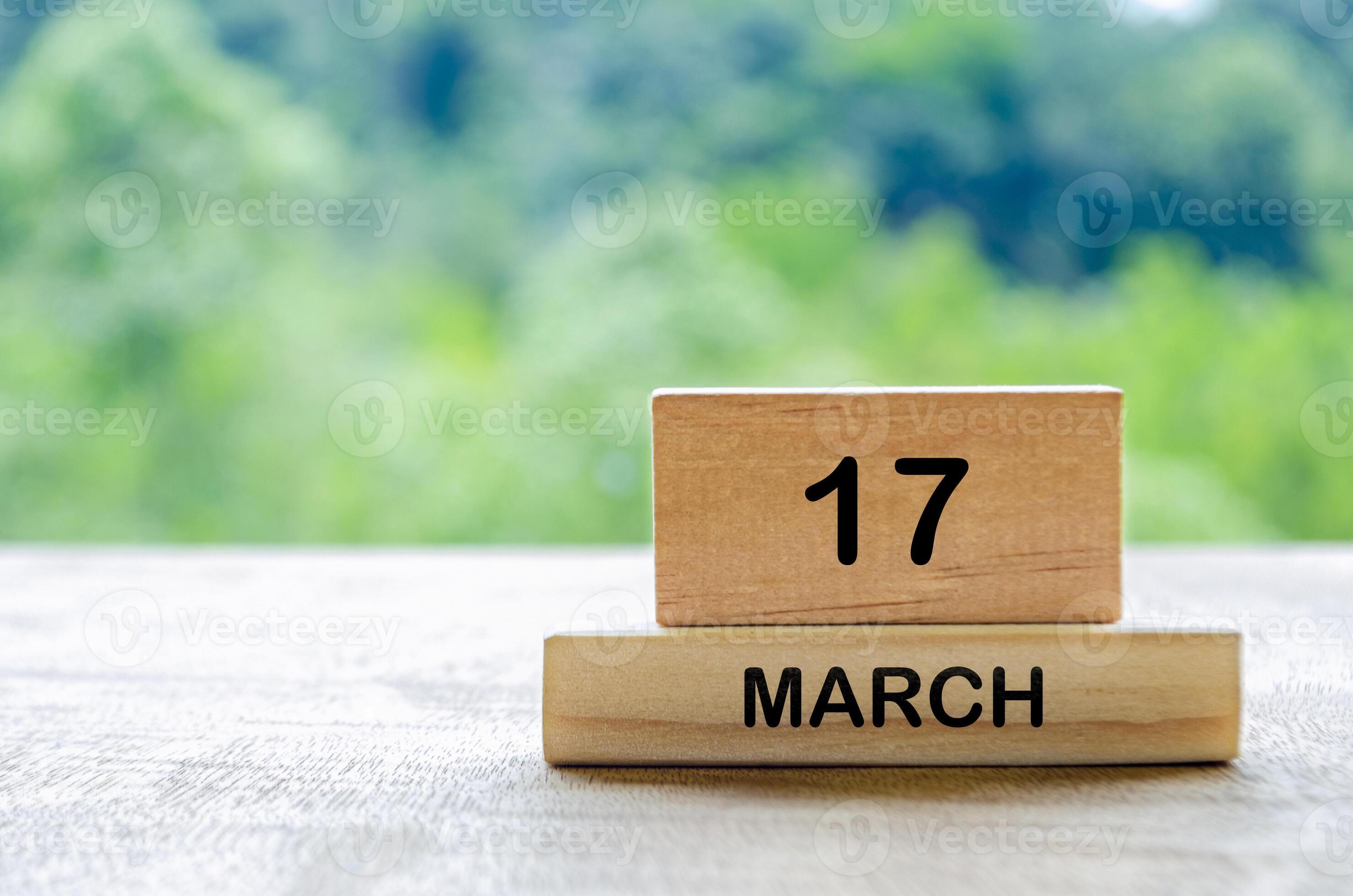 17 March calendar on wooden table with customizable space for text