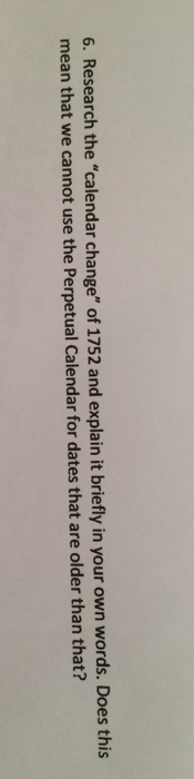Solved Research the calendar change of 1752 and explain it Chegg com