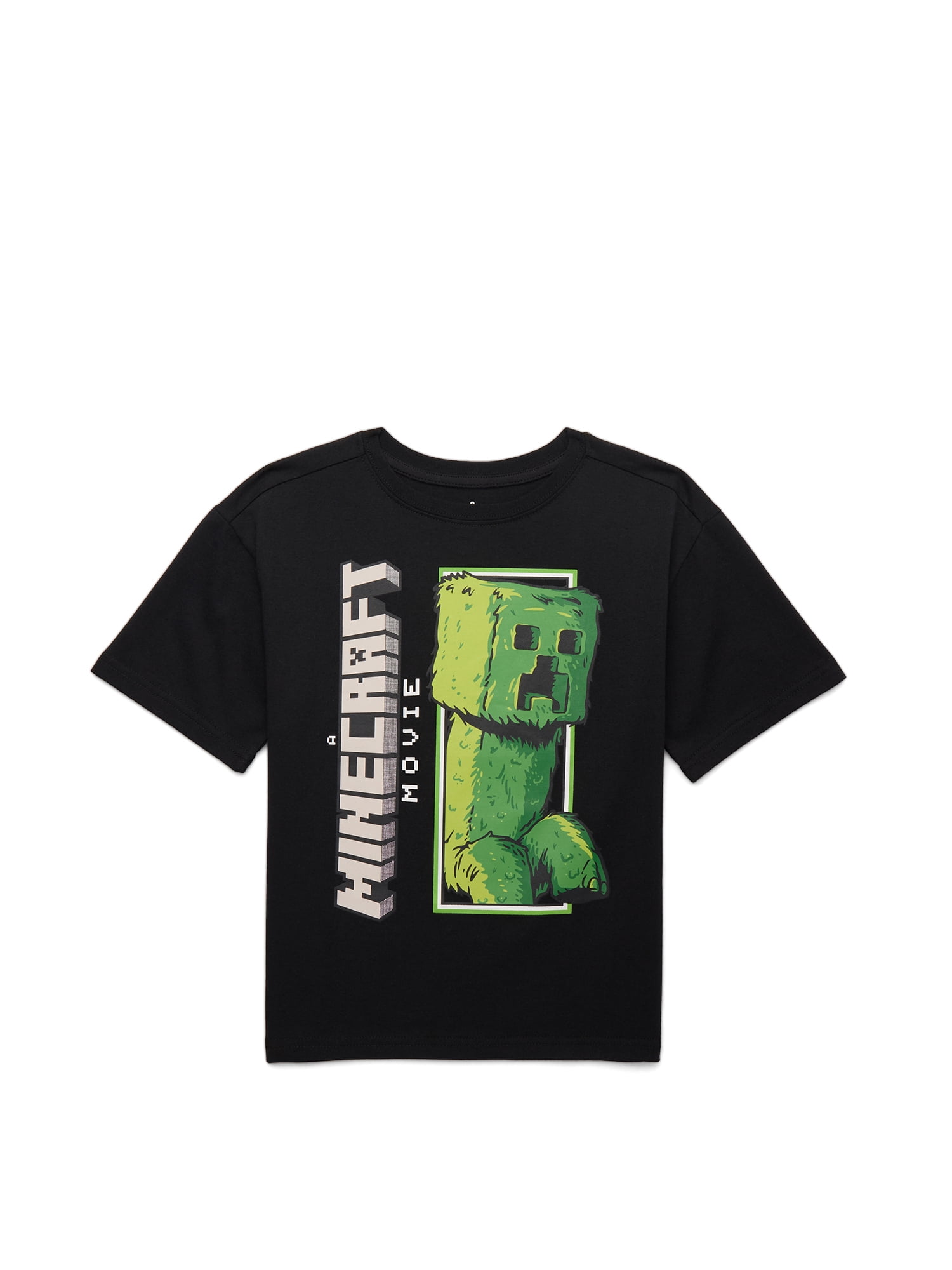 Minecraft Movie Boys Front Back Graphic Tee with Short Sleeves Sizes 4