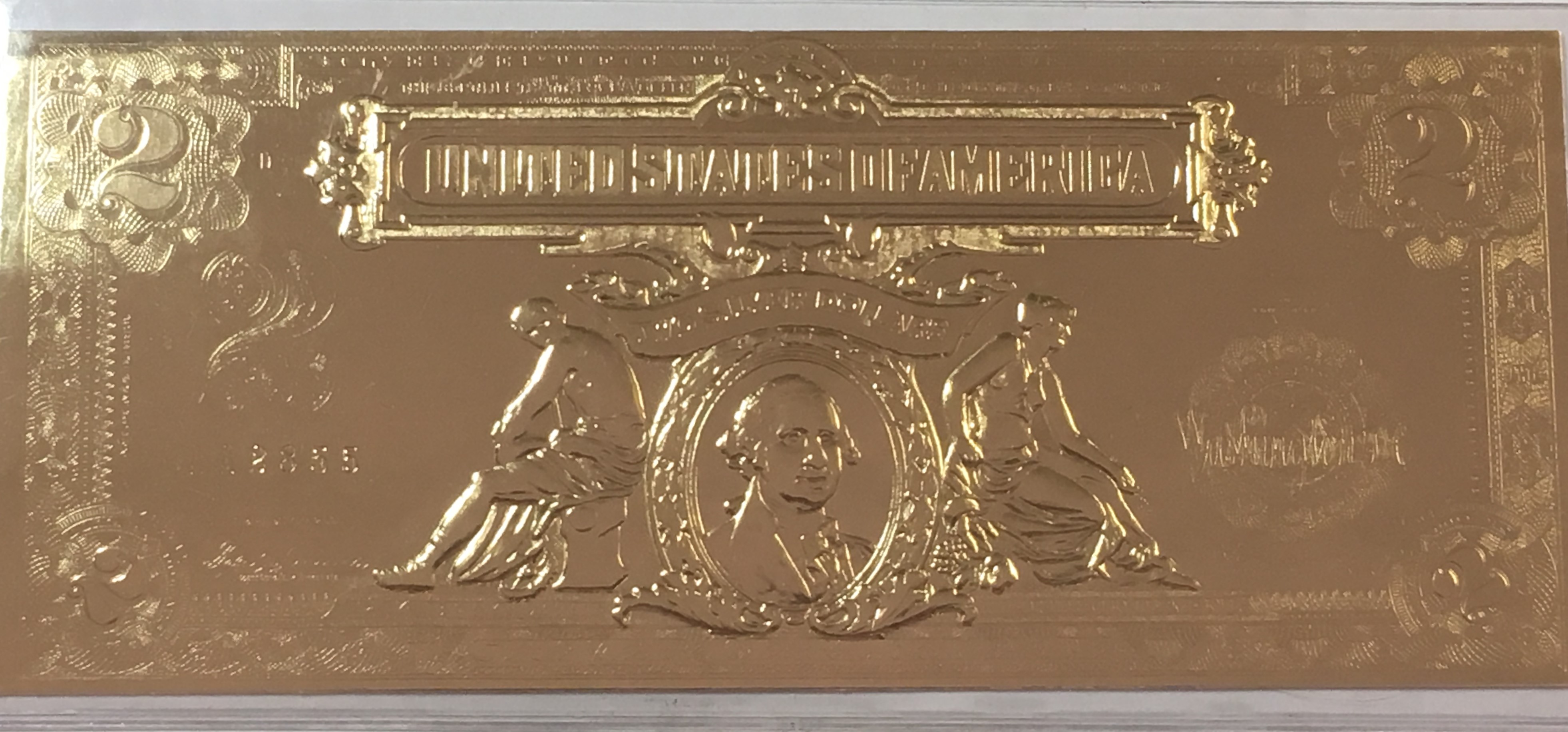 1899 $2 Silver Certificate 24K Gold Replica Property Room