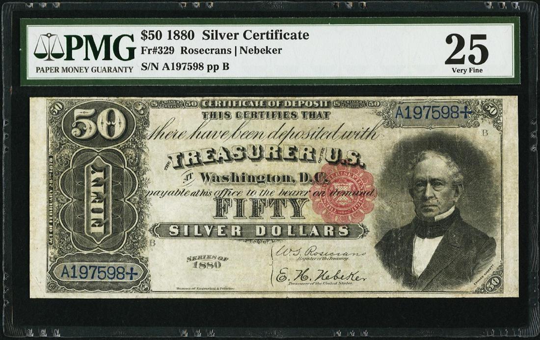 1880 $50 Silver Certificate Note Fr 329 PMG Very Fine