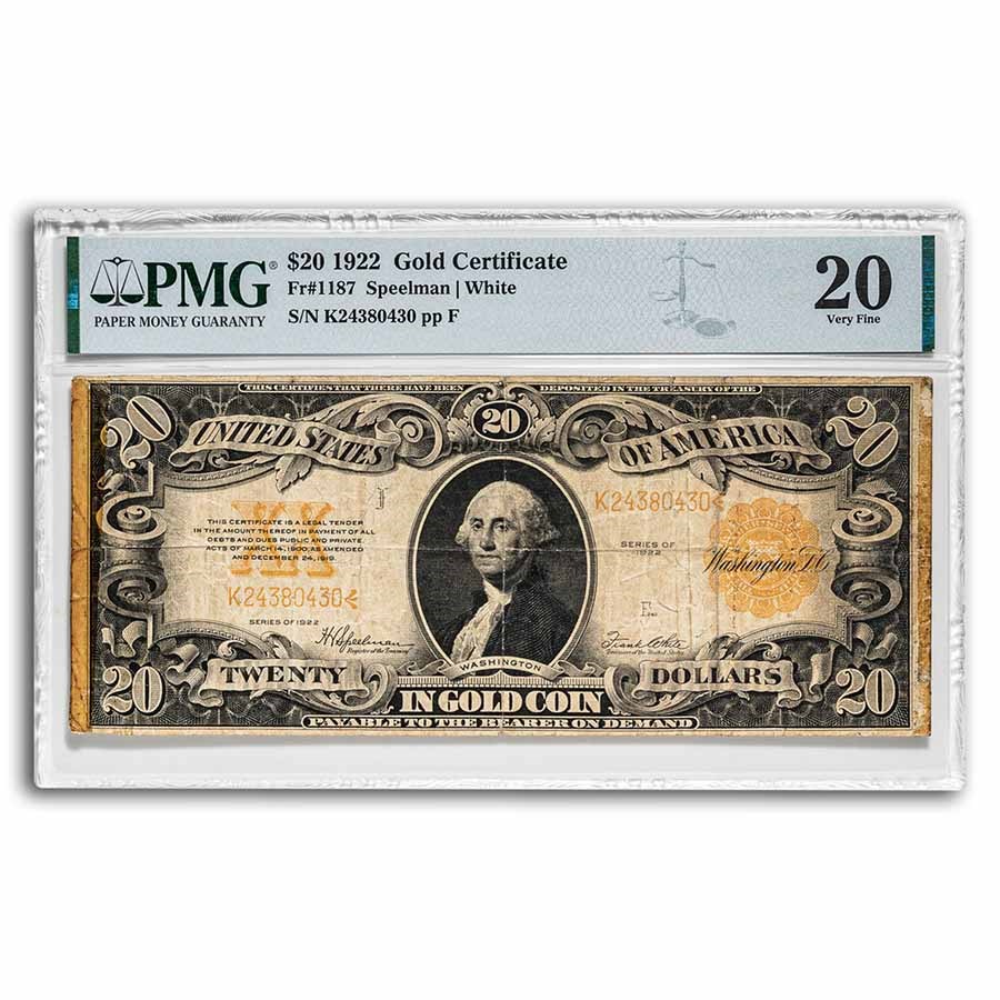 Buy 1922 $20 Gold Certificate VF 20 PMG (Fr#1187) Details APMEX