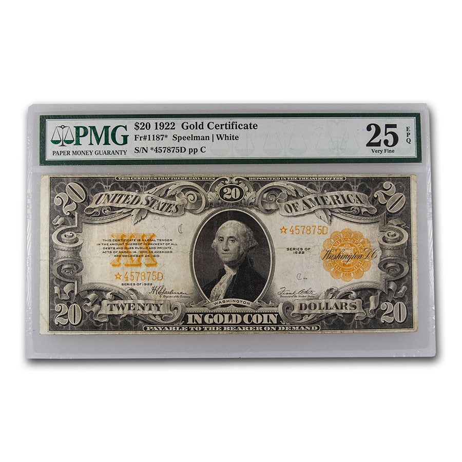 Buy 1922* $20 Gold Certificate VF 20 PMG (Fr#1187* STAR) APMEX