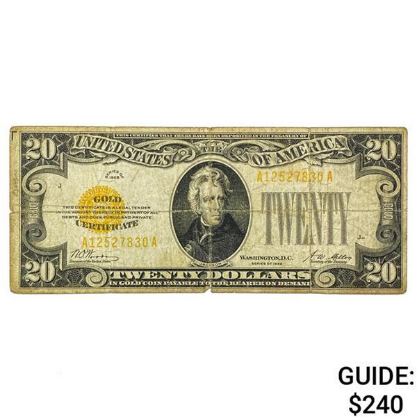 Series of 1928 $20 Gold Certificate Twenty Dollar Bill FR 2402 Free