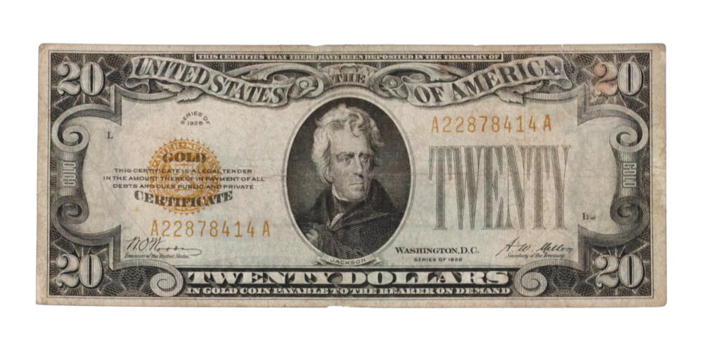 SERIES 1928 US $20 GOLD CERTIFICATE (GOLD SEAL)