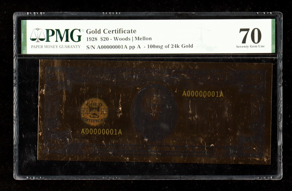 1928 $20 Gold Certificate 100mg of 24kt Gold (PMG Gem Unc 70