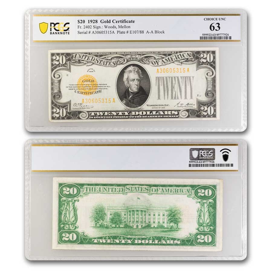 Buy 1928 $20 Gold Certificate CU 64 PMG APMEX