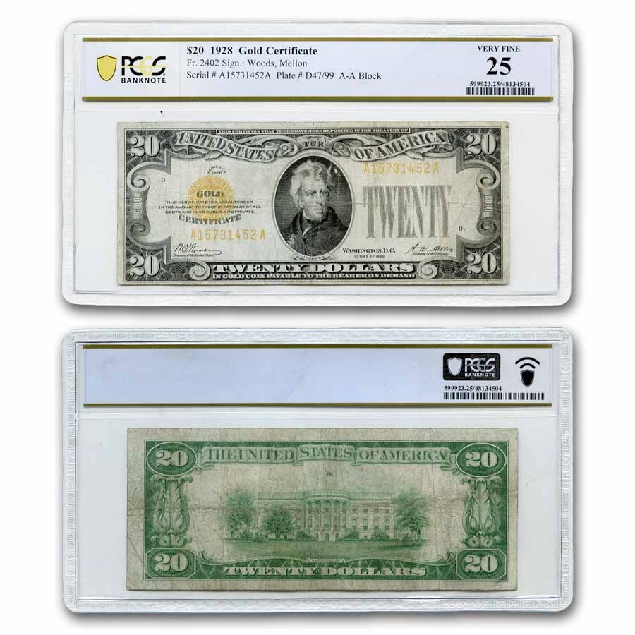 Buy 1928 $20 Gold Certificate VF (Fr#2402) APMEX