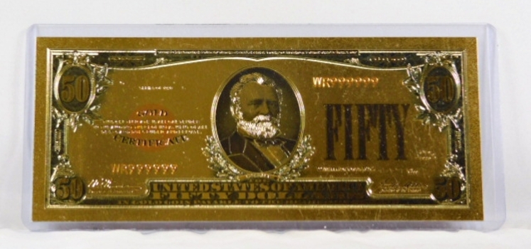 24K Gold Series of 1928 $50 Gold Certificate Replica Note Property Room