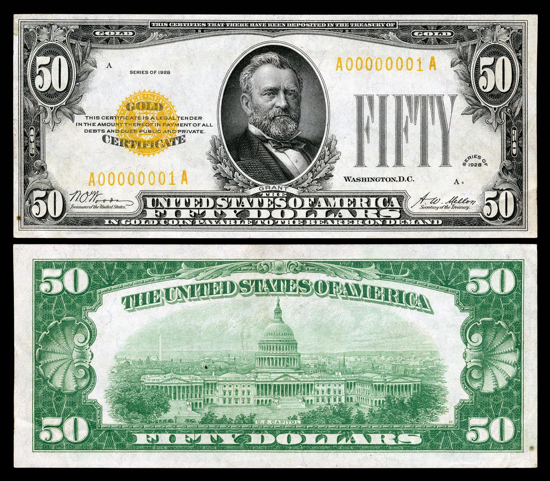 1928 $50 Gold Certificate $50 US Gold Certificate Woods Mellon