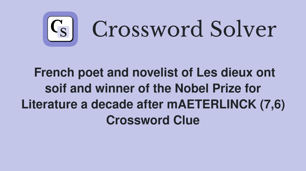 Here are some of the images for 1929 Nobel Prize For Literature Crossword Clue that we found in our website database.