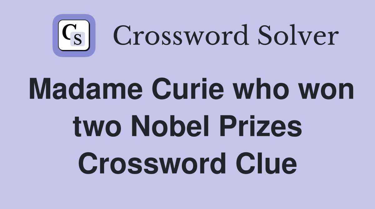 Madame Curie who won two Nobel Prizes Crossword Clue Answers