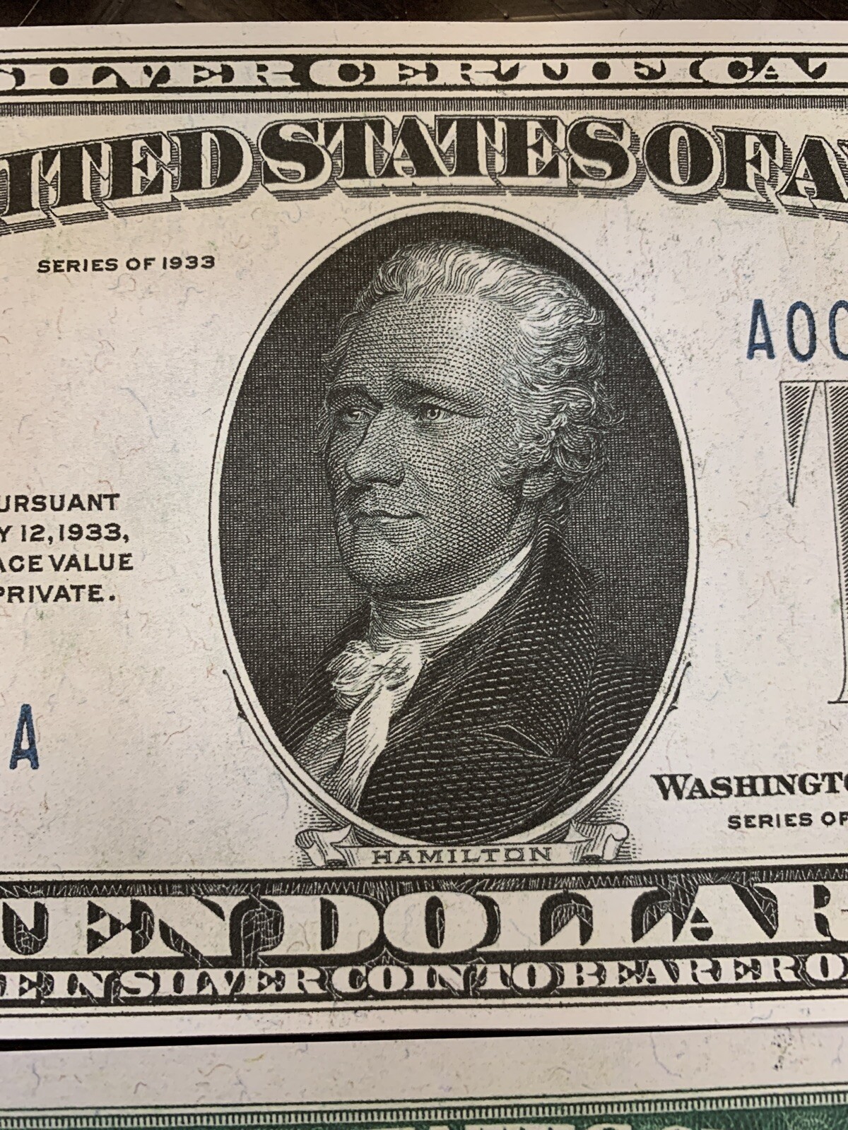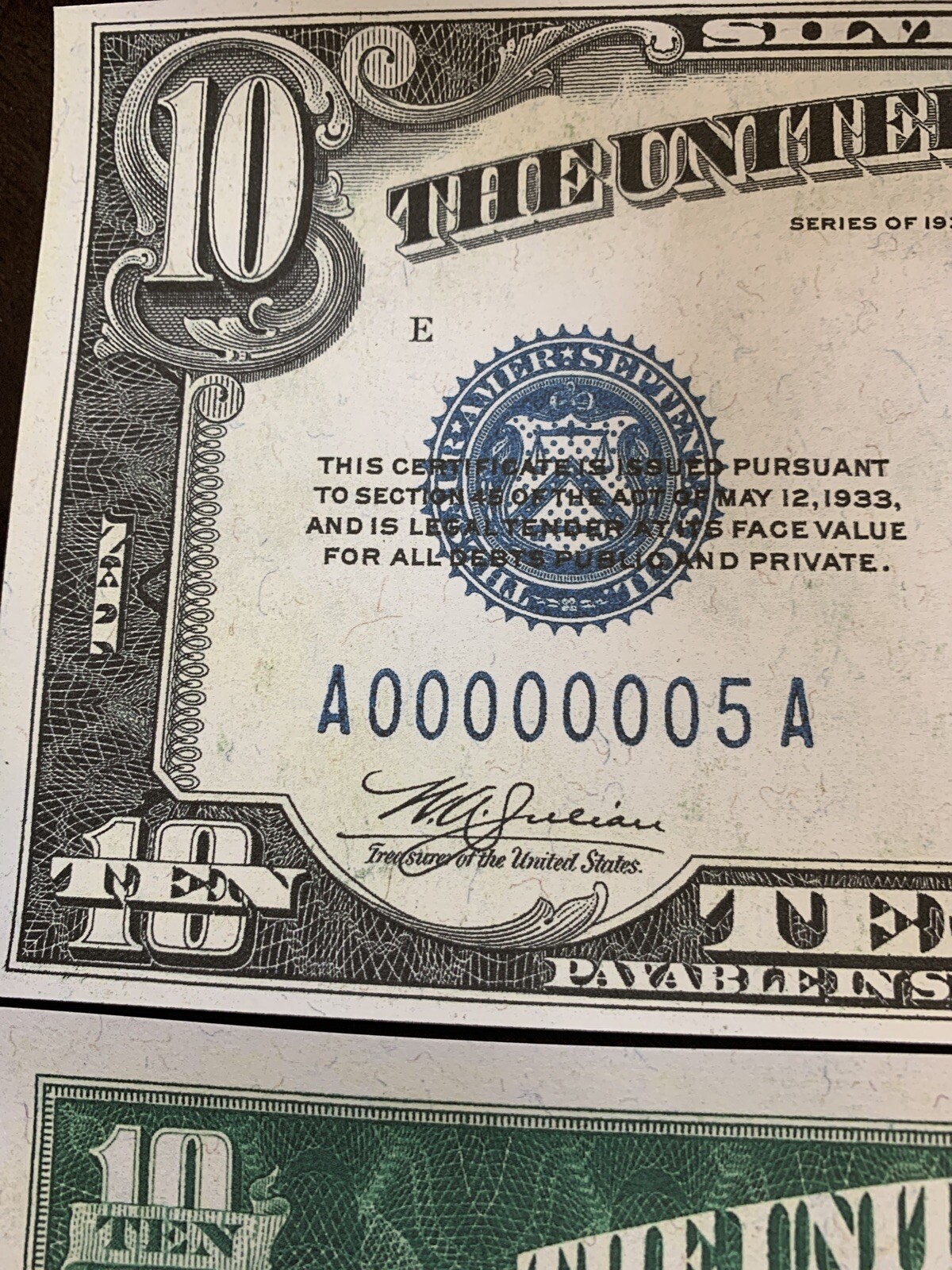 Reproduction USA $10 Bill 1933 Silver Certificate Copy USA Currency