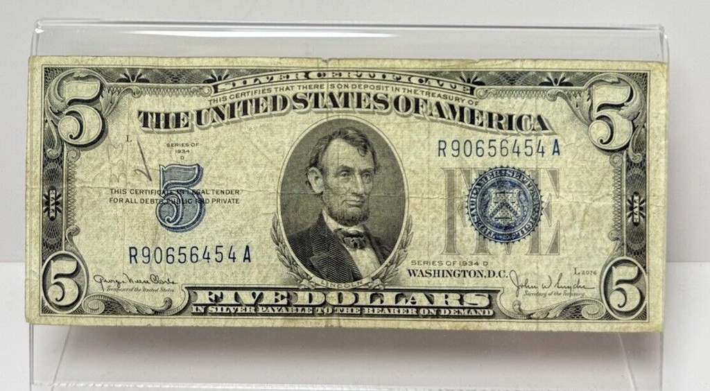 US 1934 5 Dollar Silver Certificate Vintage Currency Money Note W