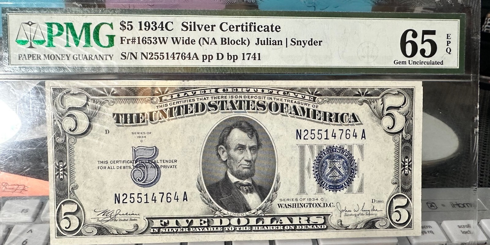 1934 Series C $5 Five Dollar Blue Seal Note Silver Certificate PGM 64