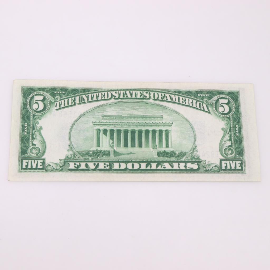 1934C U S Silver Certificate $5 Bill 1963 U S Red Seal $5 Bill