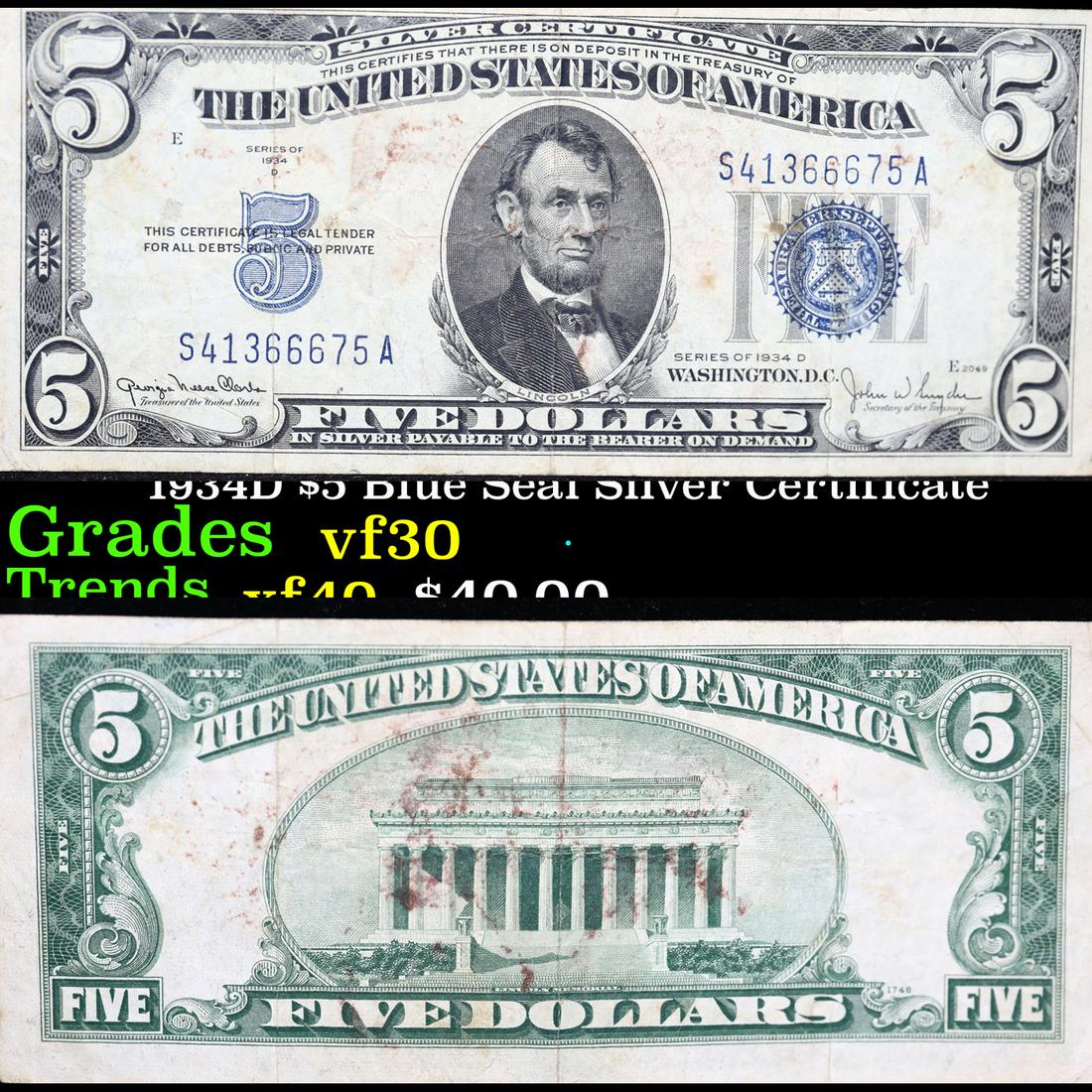 1934d $5 Blue Seal Silver Certificate Grades Vf Auction