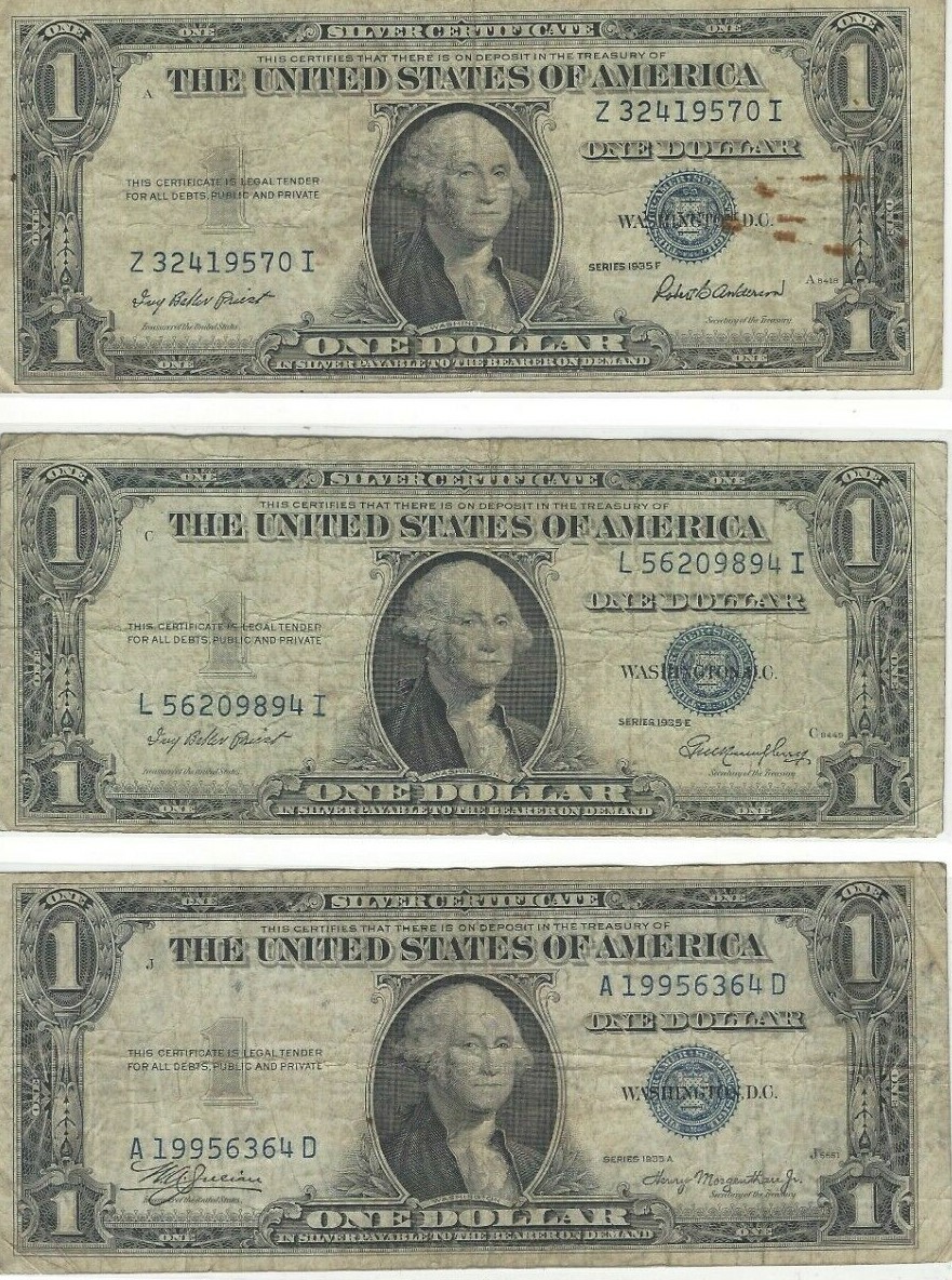 3 1935 $1 Silver Certificate SERIES 1935 A E F eBay