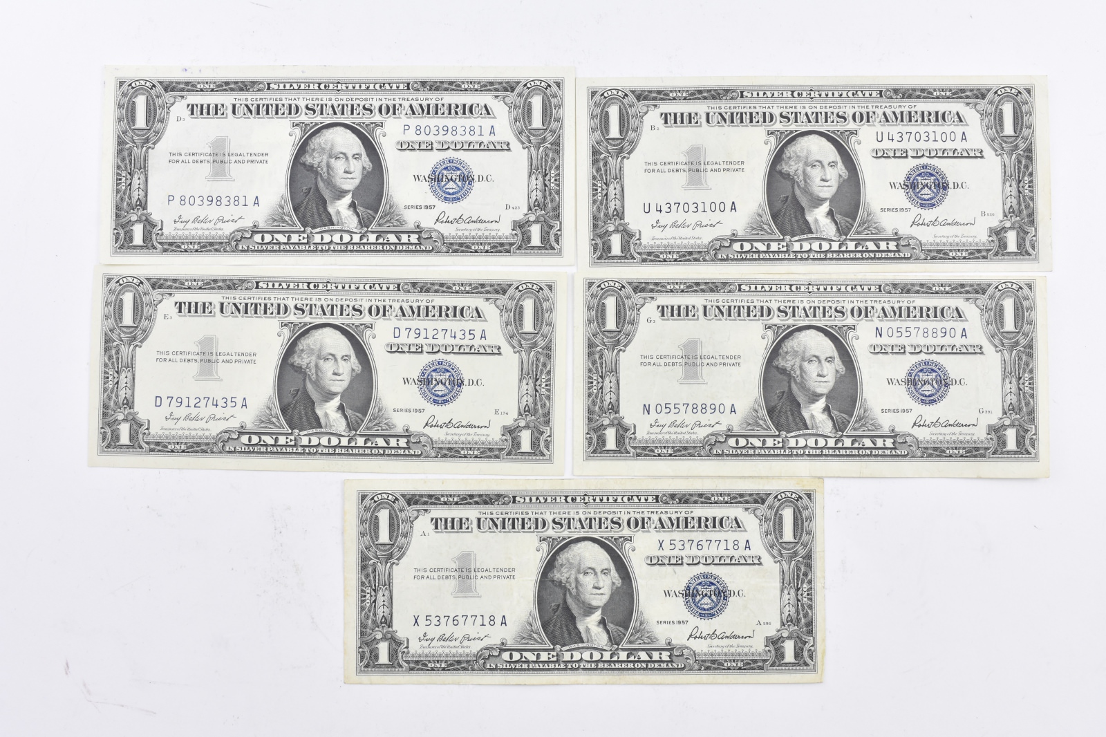 Series 1935 G US $1 Bill Silver Certificate Blue Seal CIRCULATED LOT OF