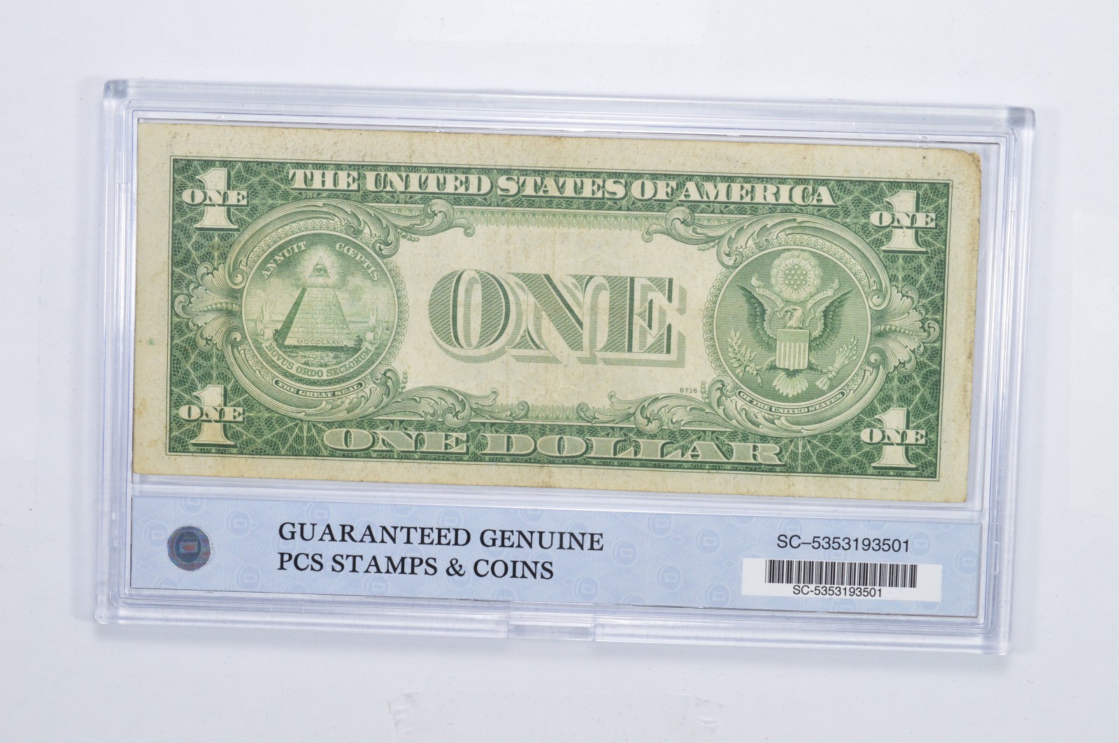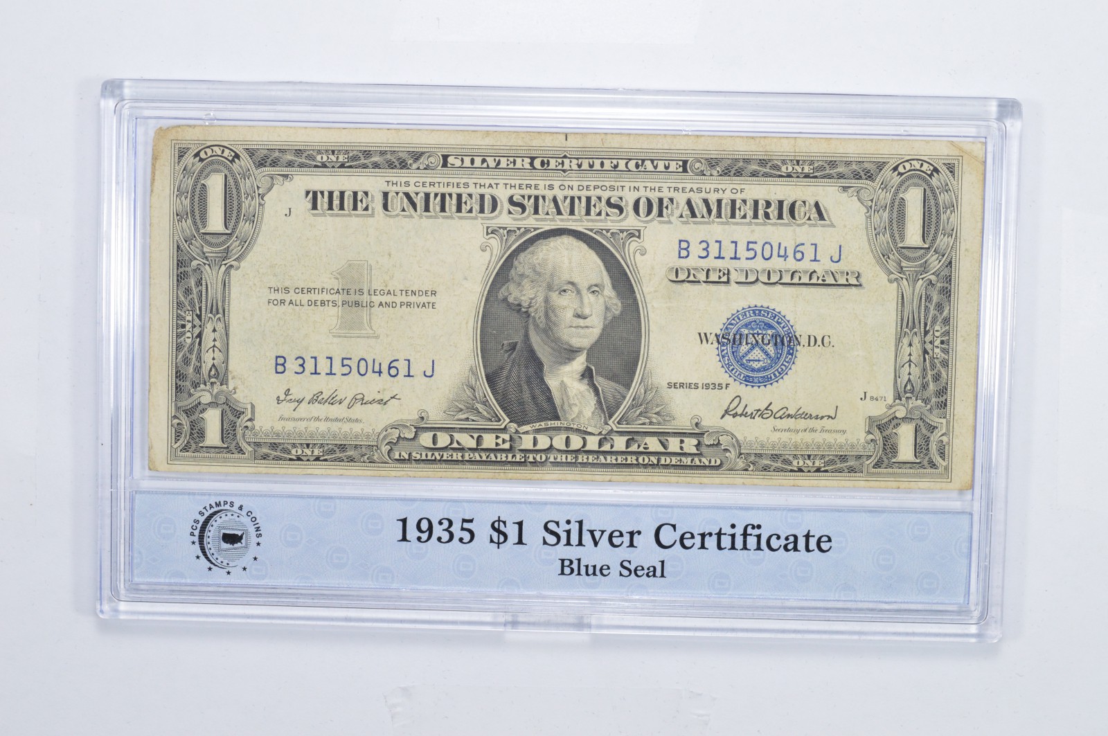 Encased U S Currency 1935 $1 Blue Seal Silver Certificate PCS Neat