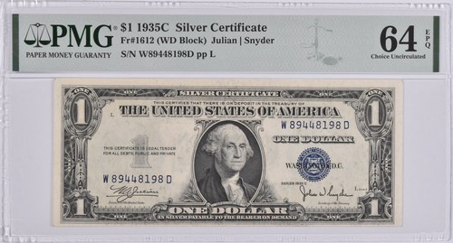 PMG Choice Unc 64 EPQ $1 1935 C Silver Certificate Fr#1612 *6223 eBay