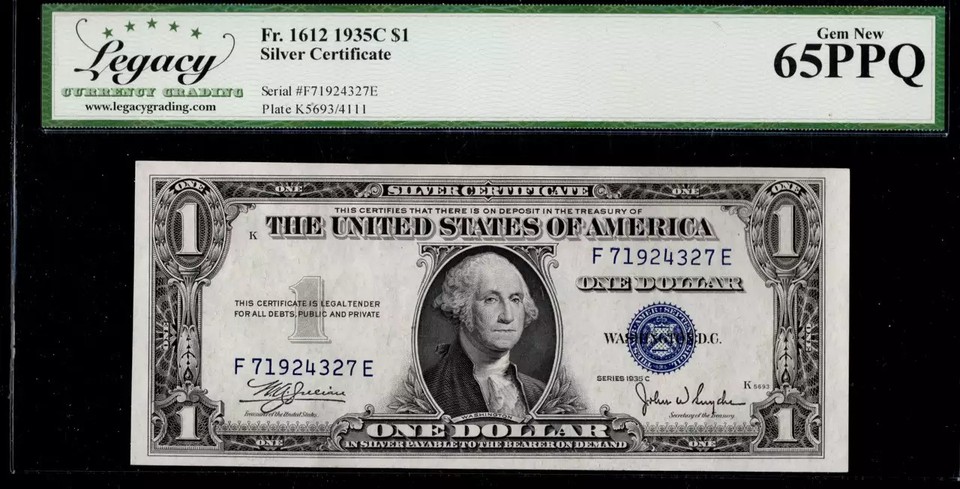 Silver Certificate One Dollar 1935 C Legacy Graded Choice About New