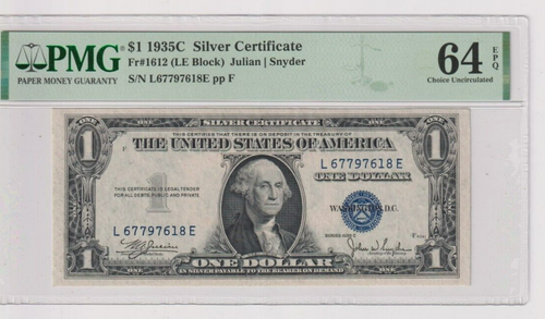 Fr 1612 1935C $1 SC L67797618E PMG 64EPQ CH CU 1935 C Silver