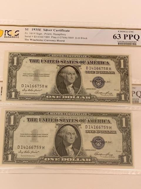 2 1935 E SERIES $ 1 SILVER CERTIFICATE CONSECUTIVE SERIAL NUMBERS eBay