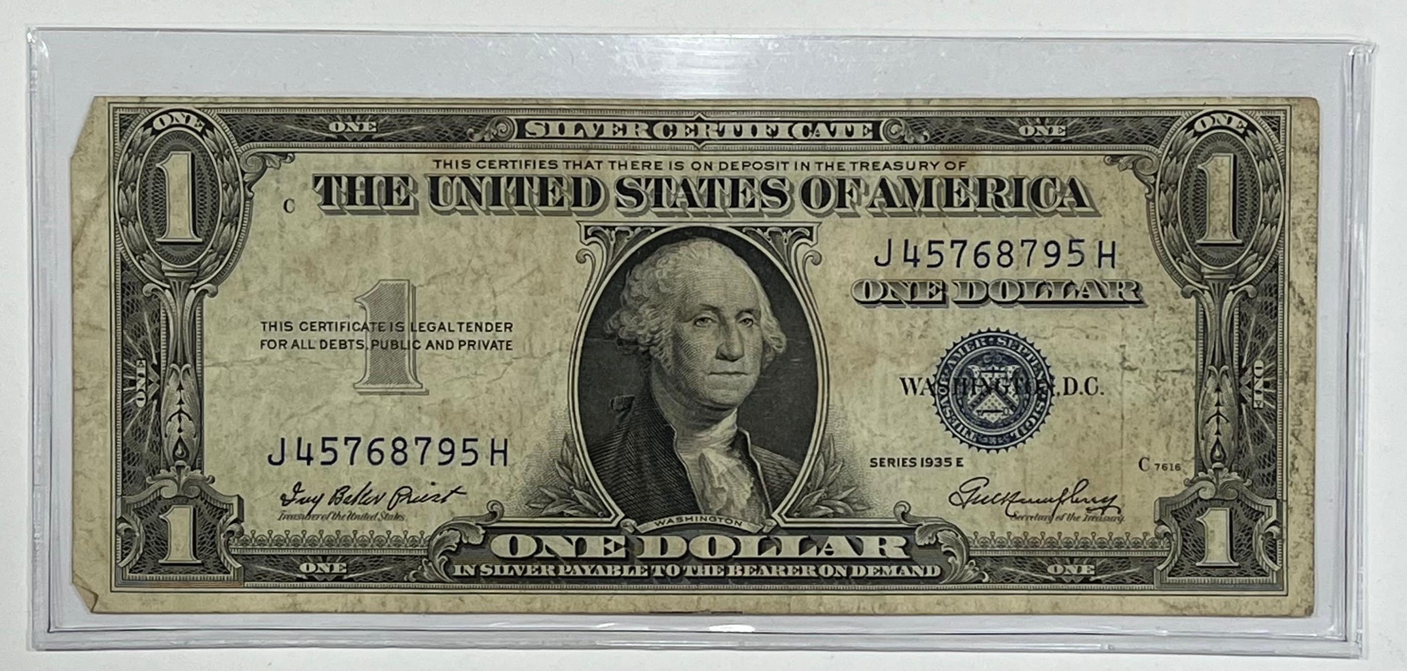 $1 1935 E blue seal Small Silver Certificates 1614 Kearney Coin Center