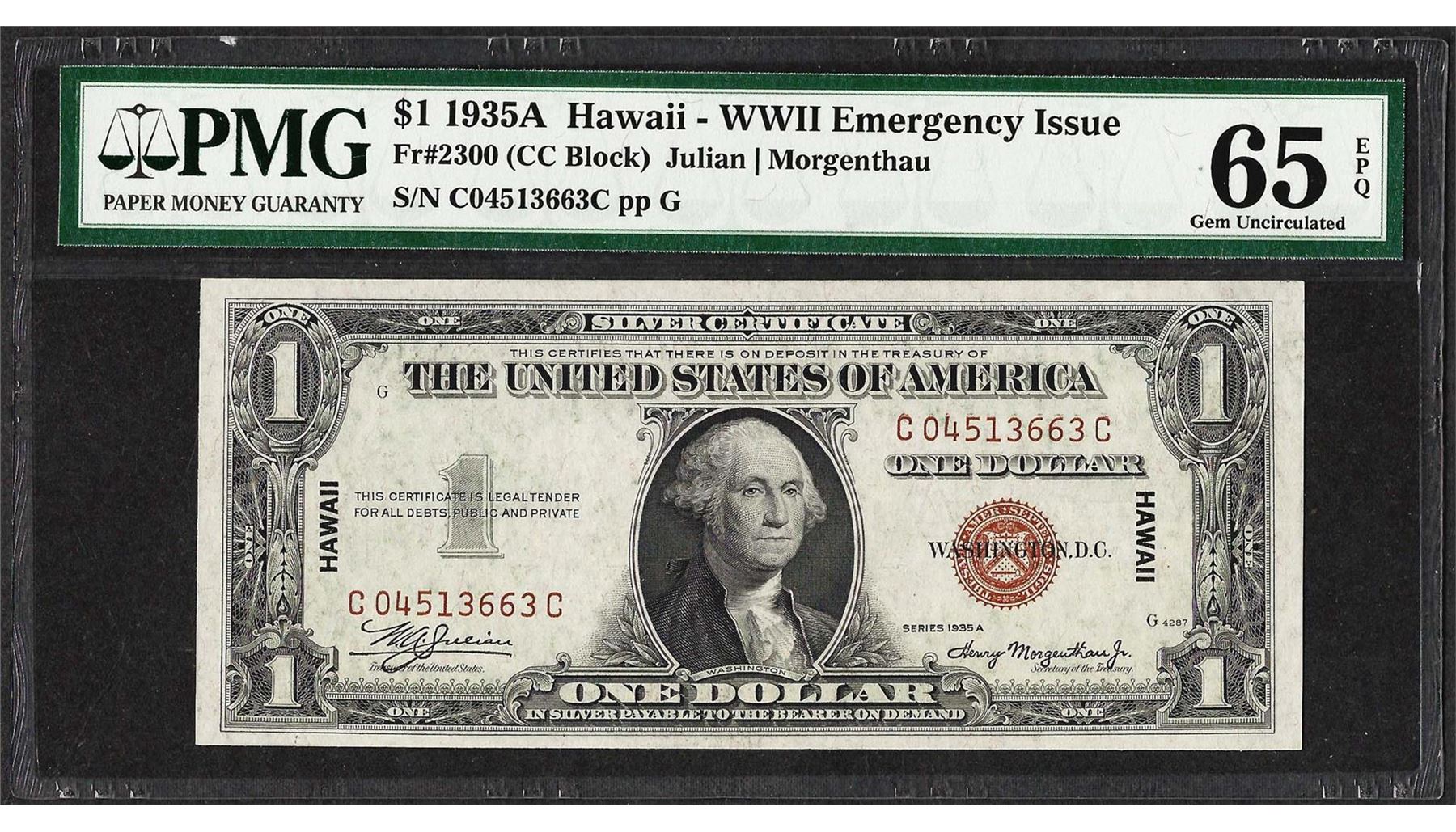 At Auction: 1935A $1 Silver Certificate Hawaii WWII Emergency Currency
