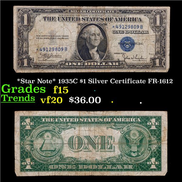 *Star Note* 1935C $1 Silver Certificate FR 1612 Grades f