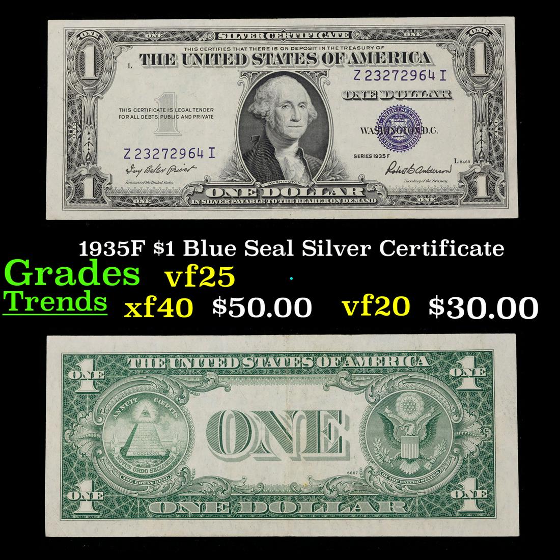 1935F $1 Blue Seal Silver Certificate Grades vf