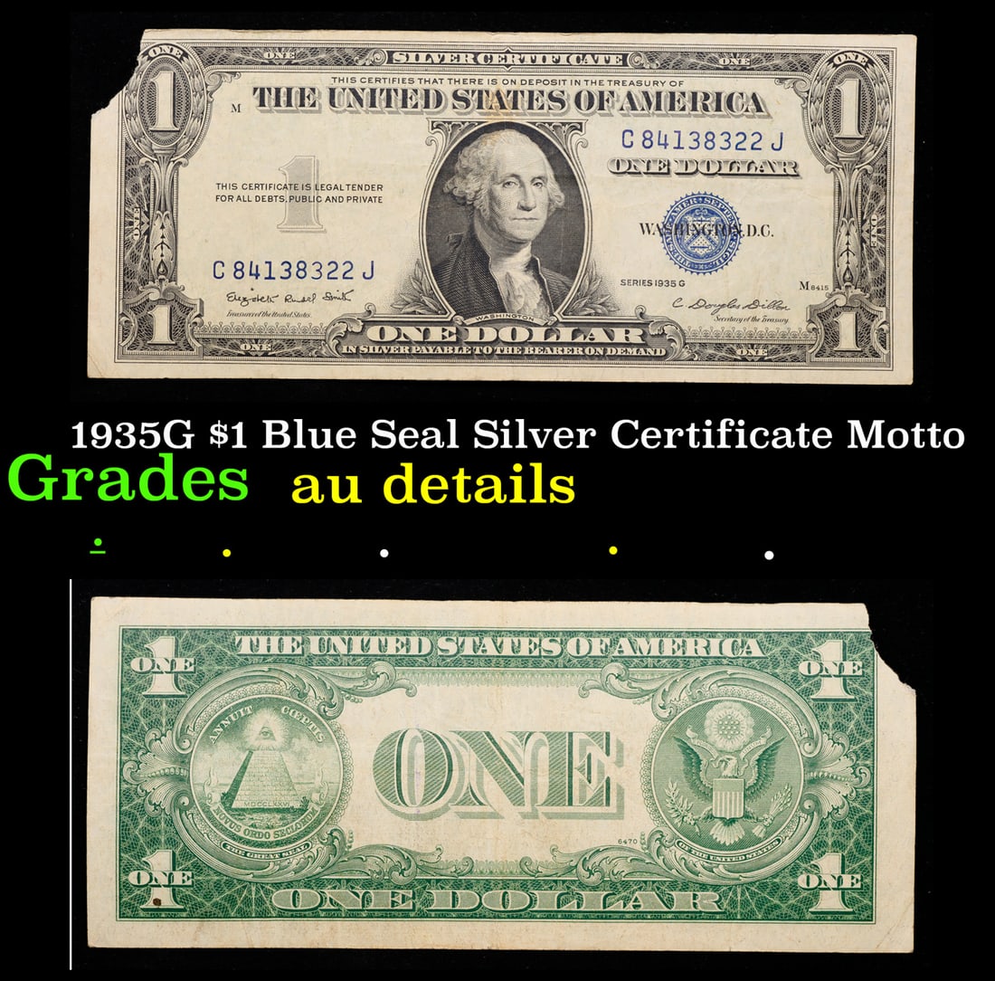 1935g $1 Blue Seal Silver Certificate Grades Au Details Motto