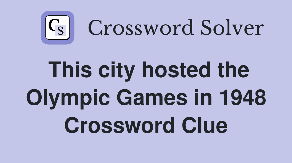 This city hosted the Olympic Games in 1948 Crossword Clue Answers