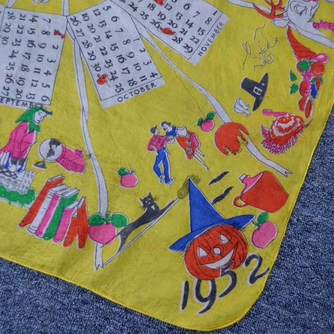 Vintage #39 AS IS #39 1952 Calendar Year Scarf With Illustrations and