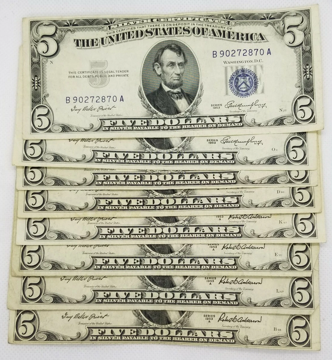 1953 $5 Dollar Silver Certificate Blue Circulated Condition eBay