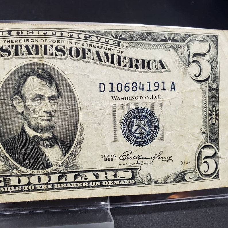 1953 US 5 Dollar Silver Certificate Note Money Currency With Etsy